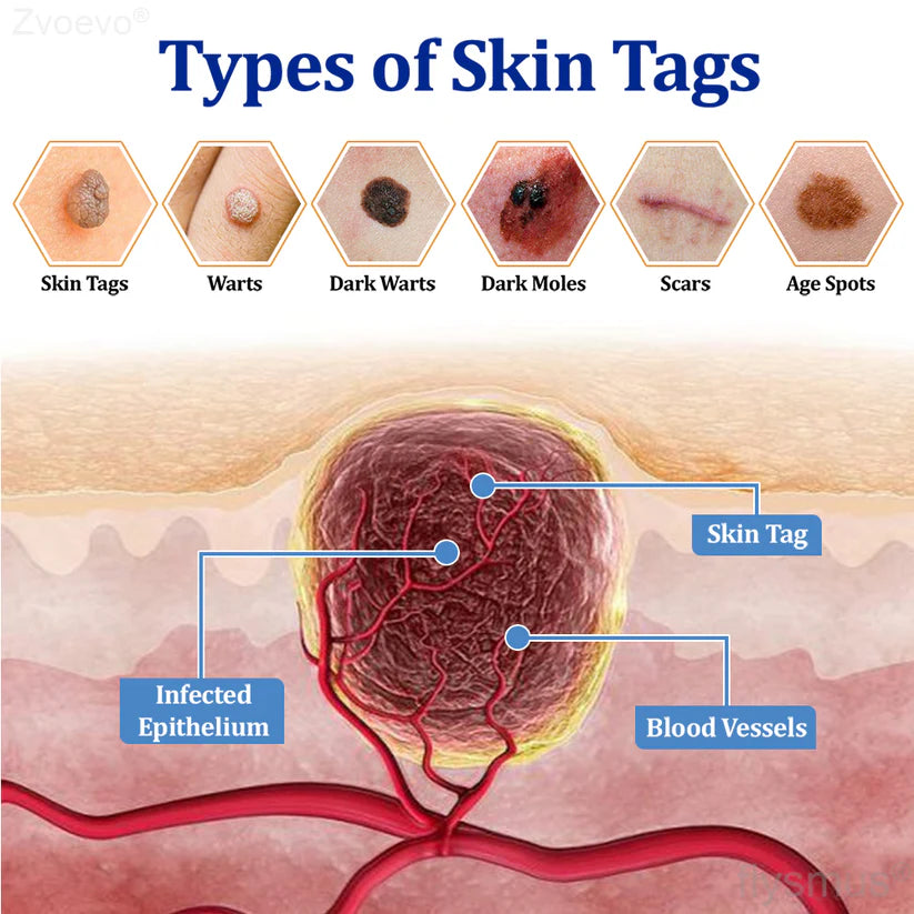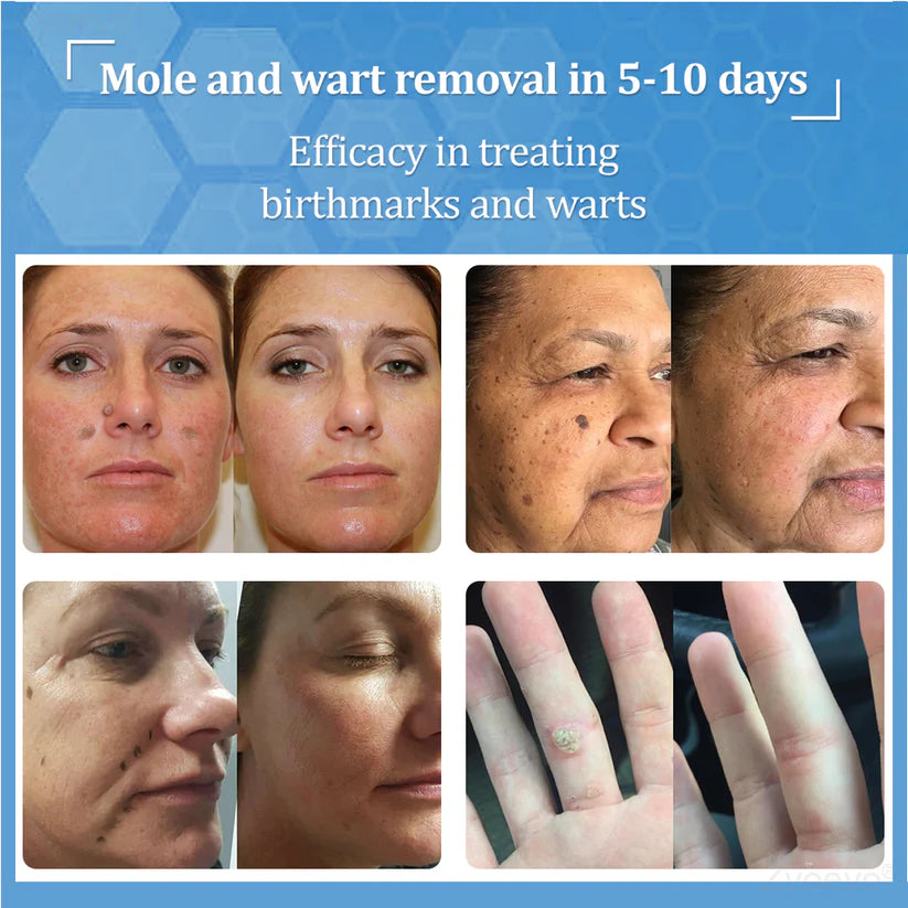 Promove a remoção natural e indolor de marcas na pele, verrugas e pintas.