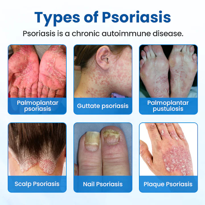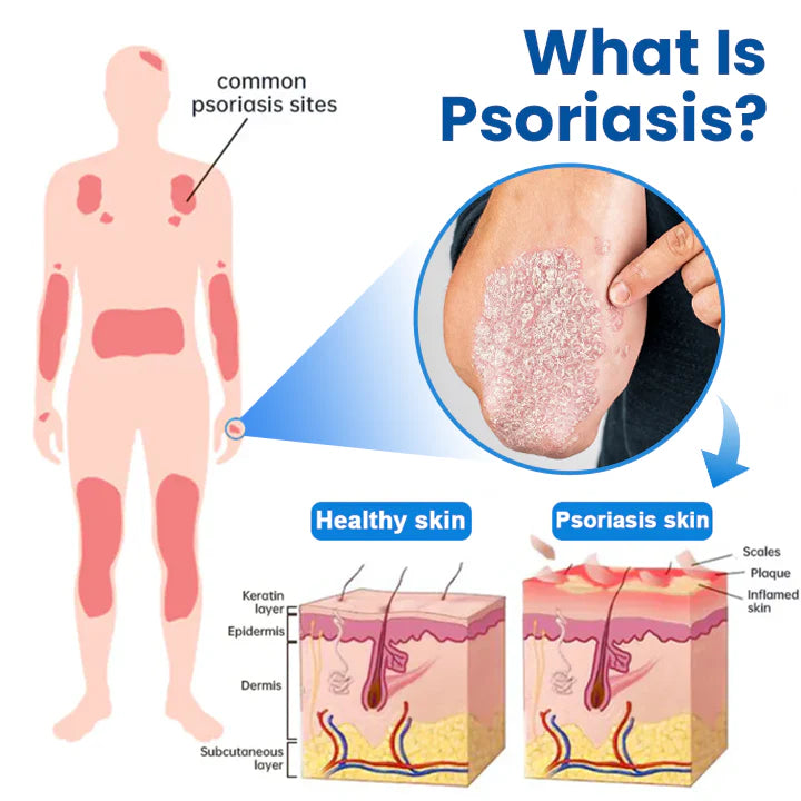 A psoríase é uma doença autoimune crônica em que o sistema imunológico dos pacientes com psoríase ataca erroneamente as células normais e saudáveis da pele, levando ao crescimento excessivo, acúmulo, descamação e vermelhidão das células da pele. Isso, em última análise, resulta na formação das placas típicas da psoríase (que podem aparecer em qualquer lugar, mas são mais comumente encontradas no couro cabeludo, cotovelos, joelhos e região lombar).