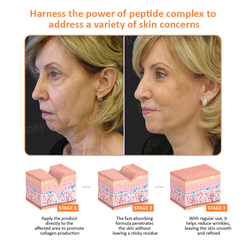Os peptídeos estimulam a produção de colágeno e elastina, essenciais para uma pele firme e elástica. Ao sinalizar à pele para se reparar e reconstruir, eles ajudam a reduzir a flacidez, suavizar as rugas e melhorar a resiliência da pele a longo prazo.